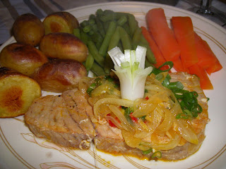 Era para ser uma receita complicada mas acabou por ser bem simples. E pode tomar as receitas que eu vou dar como duas separadas ou pode as fazer juntas como eu fiz aqui... Mas tanto o peixe como o arroz com o molho de caril podem-se fazer com outros acompanhamentos.